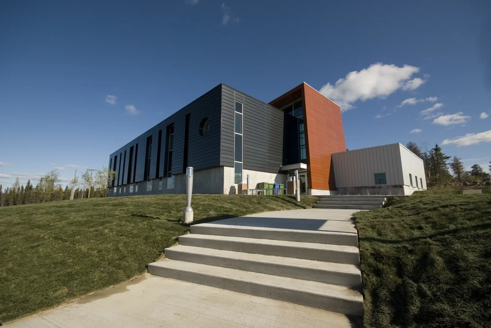 L’école aux adultes de la commission scolaire de l’Or-et-des-Bois a été finalisé en 2010. L’architecture du bâtiment se lit par sa volumétrie distincte selon la fonction. L’arche de bois qui surplombe l’école permet d’inonder de lumière naturelle les circulations intérieures par ses grandes parois vitrées. Le secteur administratif situé près de l’entrée principale est quant à lui, marqué par un volume opaque d’un seul niveau, parsemé de quelques ouvertures. Les salles de classe sont réparties sur deux niveaux, dans un volume dynamisé par une série de bandeaux verticaux pour la fenestration.